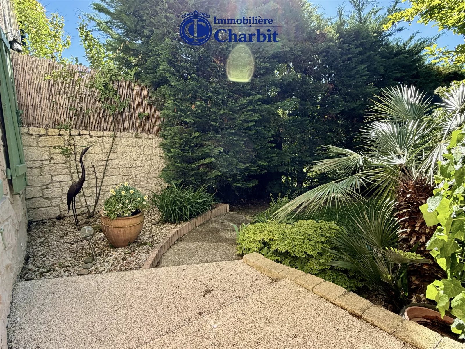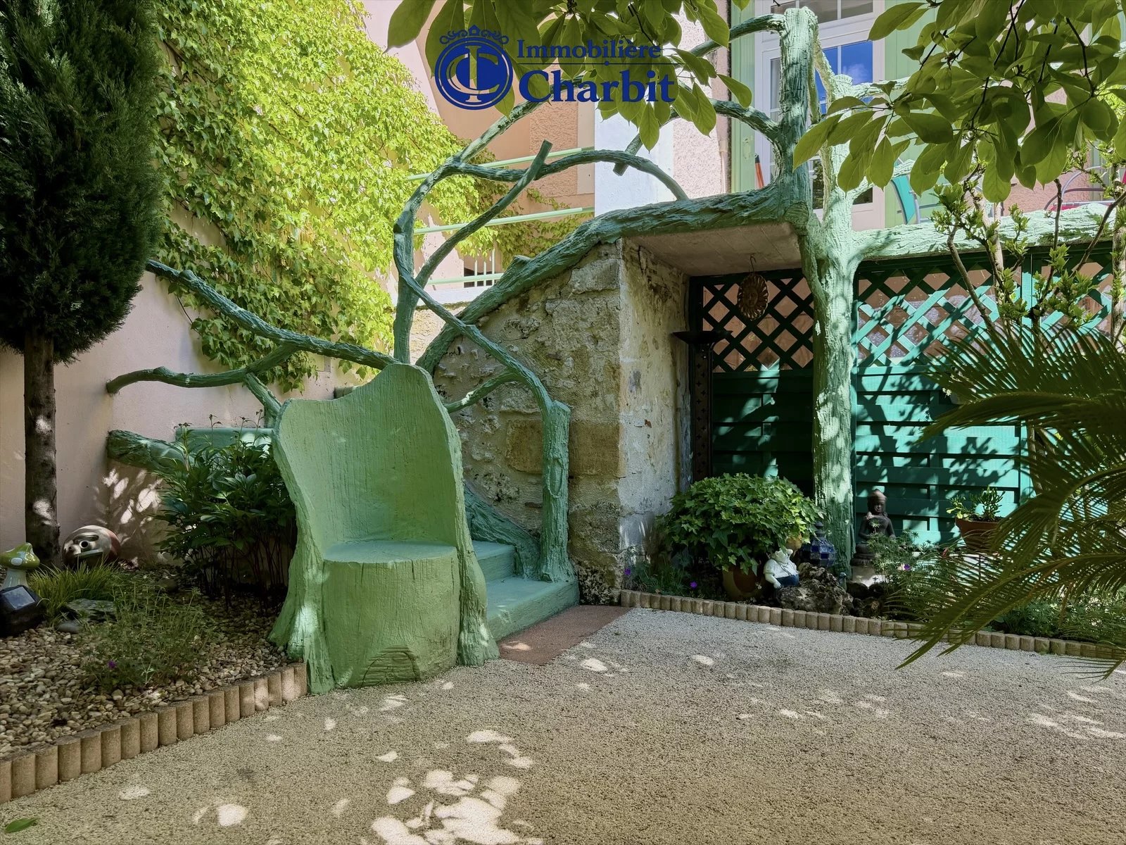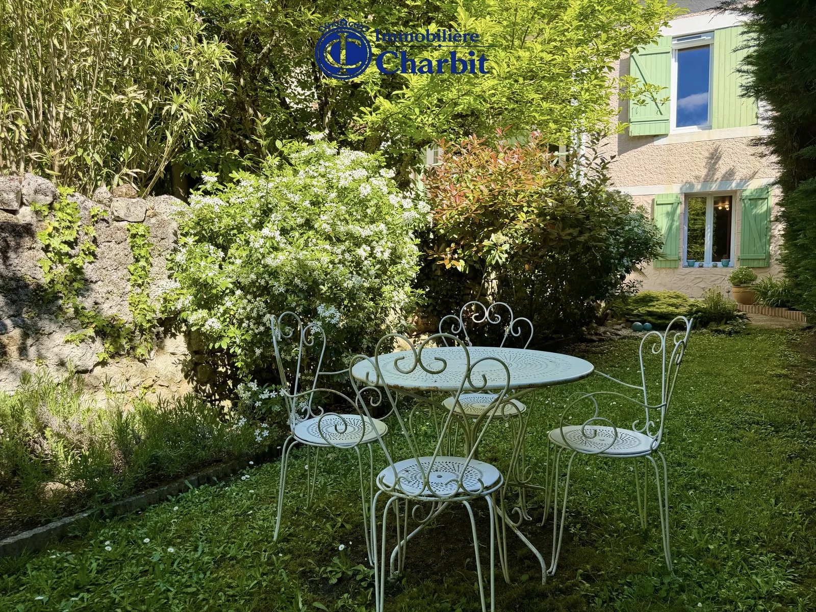 A l'extérieur, le charme opère immédiatement. Le jardin véritable écrin de verdure, a été soigneusement pensé comme un prolongement naturel de la maison.